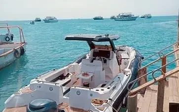 sunset hurghada trip in hula hula beach island and white island " abo monkar " with snorkeling by lurury private speed boat. our Tours include...